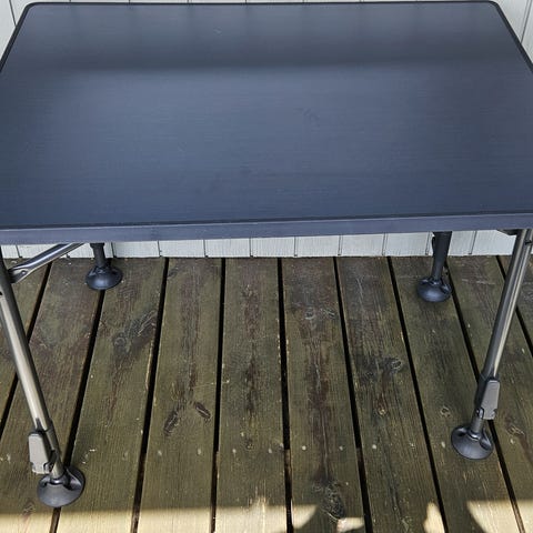 Outwell campingbord (gråt) med indstillede ben og bæretaske. Kan klappes sammen på midten. Som nyt. Måler 80 x 120. Vægt 8,4 kg.