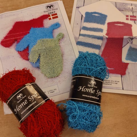 Hæklet suttesnor i bomuldsgarn med metalclips. Sættet består af to suttesnore i blå og lyserød, hver opbygget af runde, hæklede elementer forbundet på række. I den ene ende er der metalclips til fastgørelse på tøj eller stof. Suttesnoren kan bruges til at holde sutten inden for rækkevidde og mindske risikoen for at den bliver væk eller falder på gulvet.