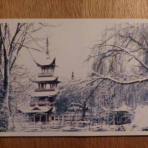 Ubrugt julekort fra Tivoli med billede af en tilfrosen Tivolisø.