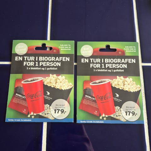 2 biograf billetter med popcorn og cola