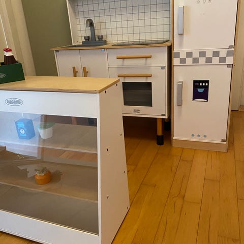 Legekøleskabt er i god stand med en masse godt tilbehør så det er lige klar til at blive leget med.