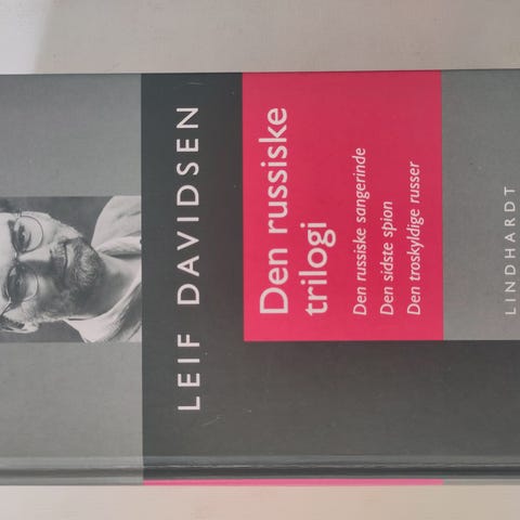 Sammendrag: Leif Davidsens store russiske trilogi 'Den russiske sangerinde', 'Den sidste spion' og 'Den troskyldige russer' omhandler tiden umiddelbart før, under og efter murens og kommunismens fald. Bøgerne er samlet i ét bind og repræsenterer et seriøst bud på dansk spænding i international klasse.