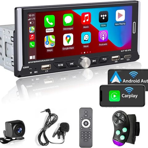 CarSense Car Voice Player bilradio med indbygget 5” stor skærm. Leveres med hovedenhed, fjernbetjening, kabler og tilbehør som vist. Den har virkelig mange funktioner Bluetooth, Apple CarPlay, bakkamera mv.