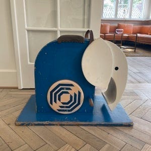 Portemonnee elefant Drumbo i porcelæn designet af Luigi Colani for Höchst Decor i Tyskland, cirka 1970–1980, modell Drumbo, i fremragende stand med mål 17 cm bred, 12 cm høj og 9 cm dyb. Klik på den blå "gå til varen" knap, for at købe eller byde på denne vare. Den samlede pris vil blive vist inden du afgiver dit bud.