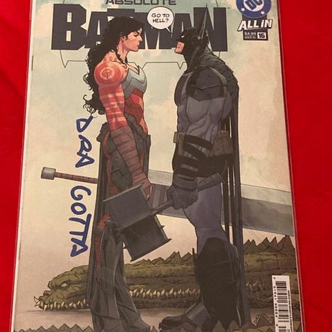 Batman #13 NYCC 2025 East Side Comics Gold Foil Variant CGC 9.8 signeret af Greg Capullo – begrænset til 500 eksemplarer verden over. Klik på den blå "gå til varen" knap, for at købe eller byde på denne vare. Den samlede pris vil blive vist inden du afgiver dit bud.