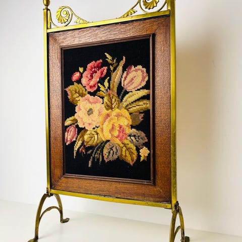 Victoriansk bronzebrændeskærm, støbt i Storbritannien og dateret til 1880’erne, i fremragende stand med dimensionerne 60 cm bred, 63 cm høj og 9 cm dyb, vægt 6 kg, udsmykket med griffiner og en mytologisk figur, der står på kløer. Klik på den blå "gå til varen" knap, for at købe eller byde på denne vare. Den samlede pris vil blive vist inden du afgiver dit bud.