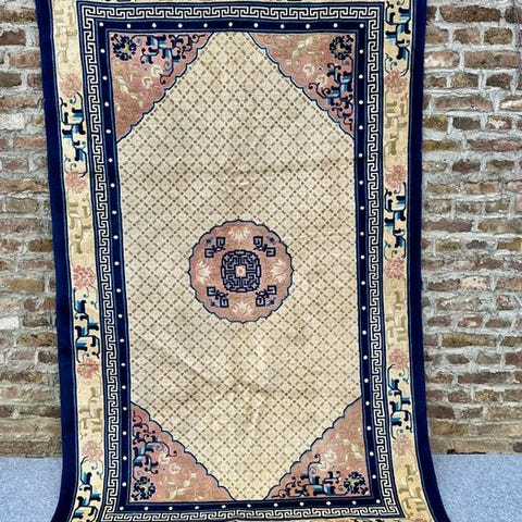 Pekin, Kina — håndknyttet orientalsk tæppe af uld over bomuld, 300 cm × 200 cm, flerfarvet, midten af det 20. århundrede, i meget god stand, professionelt renset, vægt 30 kg, ægthedscertifikat. Klik på den blå "gå til varen" knap, for at købe eller byde på denne vare. Den samlede pris vil blive vist inden du afgiver dit bud.