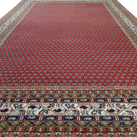 Indisk håndknyttet orientalsk tæppe, model Mir - Gereinigd, uld på bomuld, slutningen af det 20. århundrede, mål 345 cm × 250 cm, generelt i god stand med alder- og brugsspor, professionelt rengjort og med certifikat. Klik på den blå "gå til varen" knap, for at købe eller byde på denne vare. Den samlede pris vil blive vist inden du afgiver dit bud.