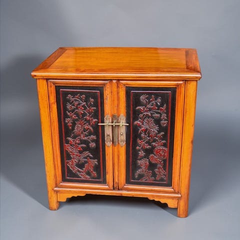 To antikke trækombinationer fra Kina, dateret til 1940’erne–1950’erne, brune, i brugstilstand med sandsynligvis små manglende dele. Klik på den blå "gå til varen" knap, for at købe eller byde på denne vare. Den samlede pris vil blive vist inden du afgiver dit bud.