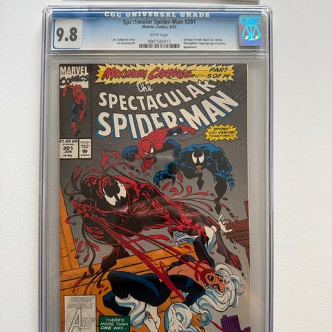 Spider-Man #1 (Marvel Comics, 1990), CGC 9.8 Signature Series, signeret af Todd McFarlane, Silver Edition med hvide sider, på engelsk. Klik på den blå "gå til varen" knap, for at købe eller byde på denne vare. Den samlede pris vil blive vist inden du afgiver dit bud.