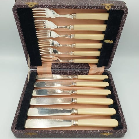 John Round of Sheffield - Fiskserveringssæt (2) - stor størrelse, Art Deco - ...