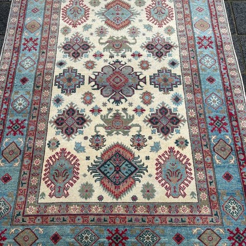 Ulden er af topkvalitet. Dette tæppe er håndknyttet i Afghanistan med uld af høj kvalitet.