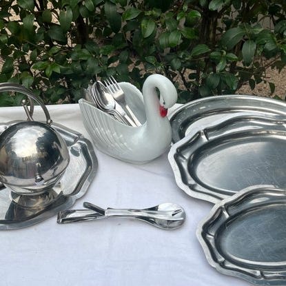 1 suppeskål, 1 højfodet vase.