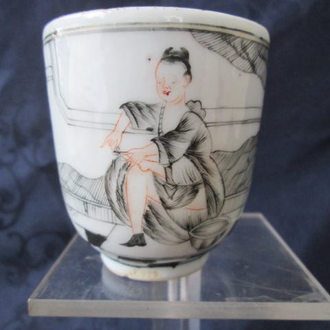 Et to-personers porcelænsæt fra Kina fra Qing-dynastiet (ca. 1850–1900), håndmalet i famille rose med to høns mellem peoner, tallerken ca. 11,5 cm i diameter, kop ca. 8 cm i diameter, i god stand med få alderstegn. Klik på den blå "gå til varen" knap, for at købe eller byde på denne vare. Den samlede pris vil blive vist inden du afgiver dit bud.