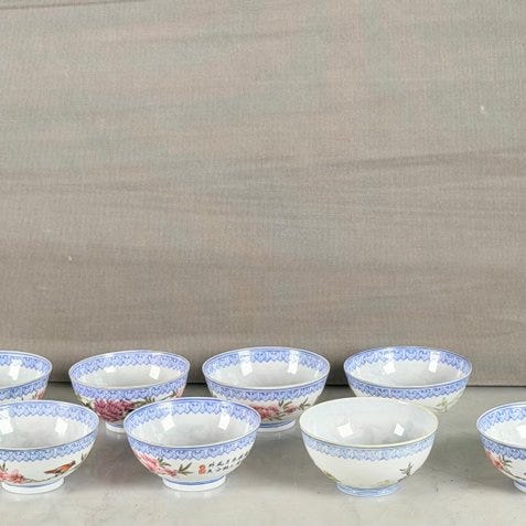 Set af tre meget sjældne og flotte kinesiske store familier&rose porcelæns te-sæt fra begyndelsen af det 20. århundrede! Alle har fire tegn i bunden! Stativet medfølger ikke!