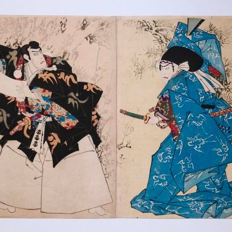 Japansk træsnit (nishiki-e) af Utagawa Kuniyoshi, Ōban Tate-e-format ca. 36 × 24 cm, fra serien Seichū Gishi Den Stories of the True Loyalty of the Faithful Samurai, original/officiel, i rimelig stand. Klik på den blå "gå til varen" knap, for at købe eller byde på denne vare. Den samlede pris vil blive vist inden du afgiver dit bud.