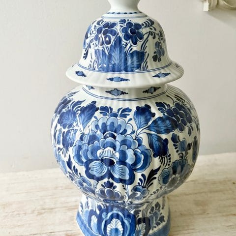 Stor vase med låg fra Porceleyne Fles Delft.