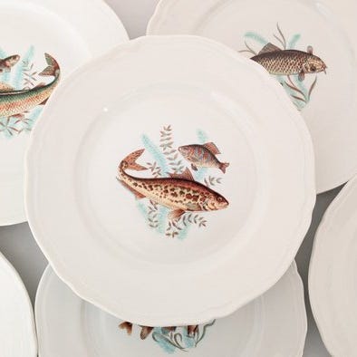 Richard Ginori - Fiskserveringssæt (7) - Pr. 6 personer - Porcelæn - Hummerse...