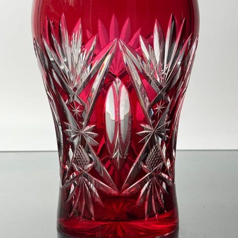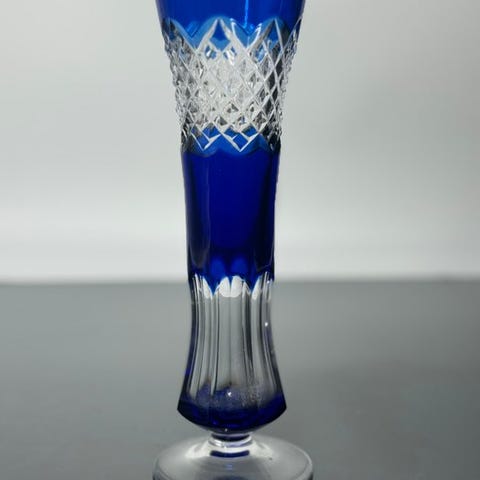 Medici-stil glaskrage, ikke underskrevet, men tilskrevet Baccarat eller Saint-Louis (Frankrig), senmiddel til begyndelsen af det 20. århundrede; klart krystal med champagne-refleksioner; højde 42 cm, maksimum diameter 18 cm, diameter ved hals 14,5 cm, fodbredde 12,5 cm, vægt 3600 g; Liège, Belgien; Art Deco, fremstår som god med let ældrebrug. Klik på den blå "gå til varen" knap, for at købe eller byde på denne vare. Den samlede pris vil blive vist inden du afgiver dit bud.