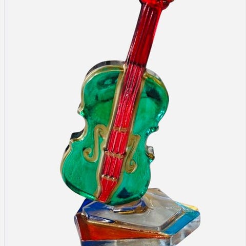 Ovalt farvet glasvindue pendent, signeret Theo van Zanten, dateret 1950–1960, måler 25,5 cm højt, 19 cm bredt og 0,5 cm tykt, samlet længde 52 cm inkl. kæde, i god brugt stand med mindre tegn på alder og pletter. Klik på den blå "gå til varen" knap, for at købe eller byde på denne vare. Den samlede pris vil blive vist inden du afgiver dit bud.