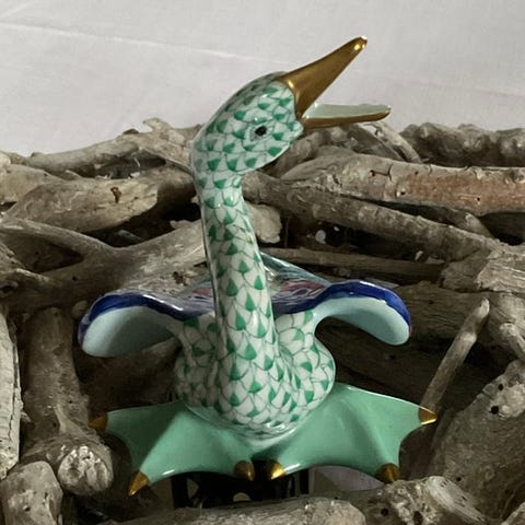 Dette fisknet- eller fiskeskæl-mønster er et typisk motiv fra Herend og malet i vieux Herend.