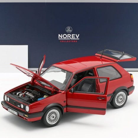 Lod af fire Norev 1/18-skala modeller, herunder BMW 5.35i (1980), VW Golf Memphis (1988, 078/200), Peugeot 404 Canriolet (1967, 116/200) og VW 1303 Cabriolet (1976, 152/200), i flere farver, hvidmetal, nye og i original æske. Klik på den blå "gå til varen" knap, for at købe eller byde på denne vare. Den samlede pris vil blive vist inden du afgiver dit bud.