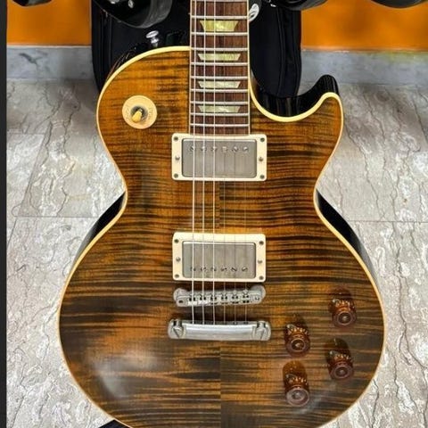 Gibson Custom Shop 'Inspired By' Slash Les Paul Jessica', fremstillet i 2008, i mint stand, testet og spilbar, mahogni-krop, med trestykke top, Heritage Cherry Sunburst aldersfinish, med original hardcase og vægt 4,65 kg. Klik på den blå "gå til varen" knap, for at købe eller byde på denne vare. Den samlede pris vil blive vist inden du afgiver dit bud.