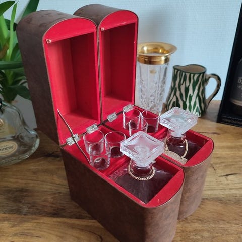 Indvendigt er det indrettet til to karafler og otte glas samt fjorten pladser til cigarrer (med små diametre på 1,5 cm).