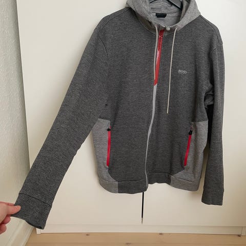 Sort Hugo Boss sweatshirt med navn foran. Den er sort og i meget fin stand, men bliver grå, når der tages billeder. Prisen er fast.