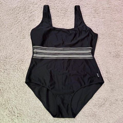 Badedragt sort med hjertemønster .Str 4XL - str 52