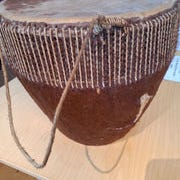Andre samleobjekter, Trommer, 2 fine trommer. Den mindste i skind til 150 kr. og den anden skind og udskåret træ til 250 kr