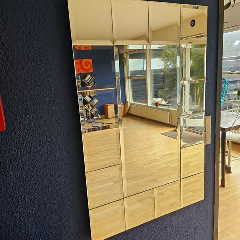 Flot stort spejl i god kvalitet med elegant facetslibning langs kanten.