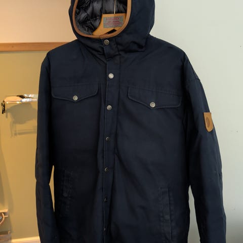 Fjällräven Greenland No.1 Down Jacket vinterjakke til mænd i størrelse M. Jakken er beige med kontrastpaneler og hætte. Fyldet er dun, som giver god isolering i koldt vejr. Rigtig god jakke til vinter, forår og efterår.