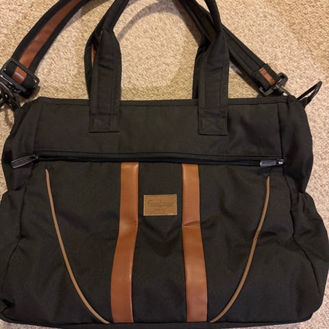 Pusletaske, OiOi, Lækker pusletaske + tilbehør fra OiOi. Mørkebrun og pink Aldrig brugt. Købt i England. Skriv eller ring for flere oplysninger. Prisen er fast. Sender gerne, men køber afholder udgiften til porto.