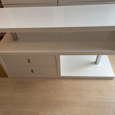 Tv bord eller bænk fra Jysk med 2 skuffer. Hvid og lys træ.