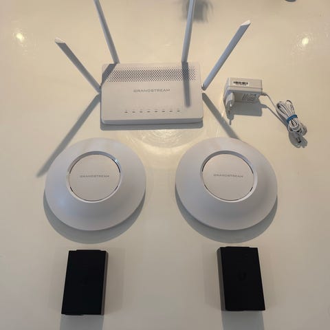 Der medfølger størm kabel router til den og kabel på 15meter og væg beslag og starlink dish