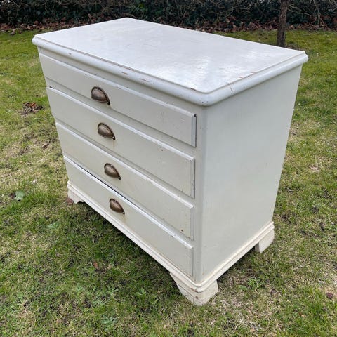 Fin kommode i massivt træ. Malet sort udvendig. Bære præg af slid, men fungerer fint