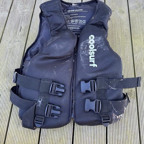 1 x sort redningsvest (mindre brugt)