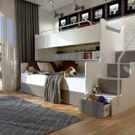 Stor seng i bunden hvor der kan sove 2 personer. Trappen kan vendes