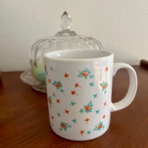 Staffordshire vintage engelsk fajance thekrus med underkopper