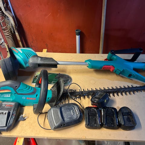 Sæt bestående af græstrimmer og hækkeklipper