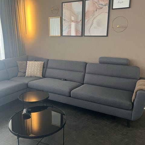 Arizona hjørnesofe 250x210 cm. Benene er demonteret på billedet men følger med i køb, derfor det illustrative billede fra nettet som ikke helt passer med det egentlige design.