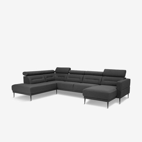 Hjørnesofa med open end, venstre vendt. Model Visby Set 8 fra Møbler i målene 203 *288*89 cm. Betrækket er bredriflet fløjl i farven Armona taupe 2.