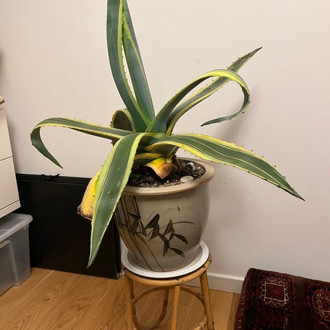 Agavaen står foran et vindue med sol om vinteren og om sommeren står den på altanen