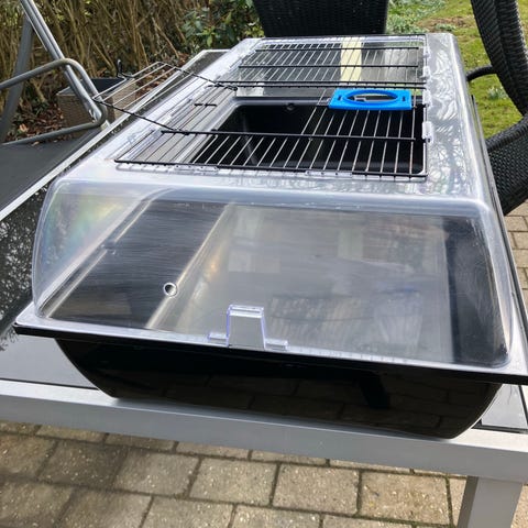 Ferplast Maxi Duna bur i grå plast med gennemsigtigt låg. Måler ca. 99 x 51,5 x 36 cm og egner sig til mindre kæledyr som f.eks. gnavere. Buret har høj bund, som hjælper med at holde strøelse og foder inde, samt åbning i toppen for nem adgang til dyret og rengøring. Velegnet til indendørs brug.