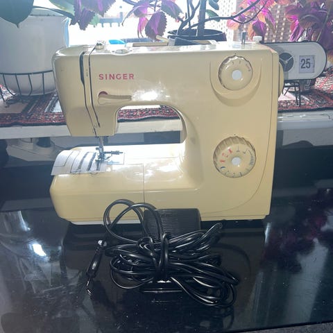 Singer Start 1306 symaskine i hvid. Mekanisk symaskine med friarm til syning af mindre dele som ærmer og bukseben. Maskinen har indbygget stingvælger på drejeknap, mulighed for lige- og zigzagsting samt baglæns syning. Leveres med fodpedal og brugsanvisning, som vist på billederne. Velegnet til almindelige syopgaver i hjemmet.