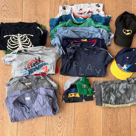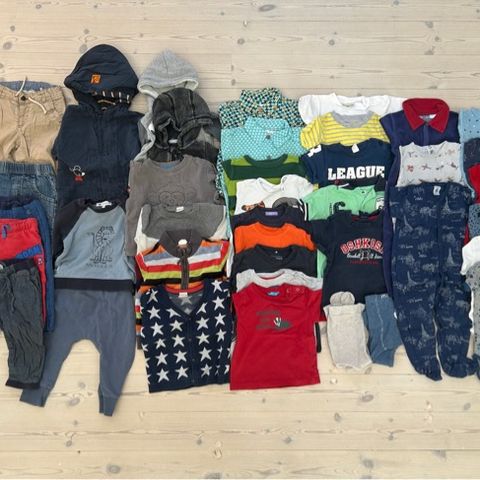 Tøjpakke i god stand. Fra dyrefrit hjem. 3 t-shirts, 4 trøjer, 1 fleece hoodie, 4 bodies, 3 natdragter, 2 bukser. Mærker som Petit Bateau, H&M og IKKS mm.
