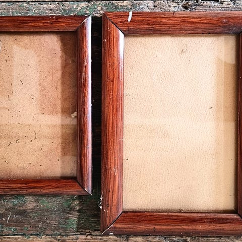 Gamle billedrammer, i metal. Se beskrivelse på hver ramme. Der medfølger 1stk buet glas på 9 x 13,5 cm er ikke på billedet