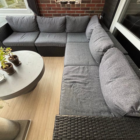 Hjørnesofa loungesæt til terrasse i flet med bord