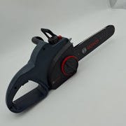 Super fin elektrisk motorsav med lyd, lys og roterende kæde. Batteriet kan tages af og på. Brugt meget begrænset. Afhentes i Helsingør.